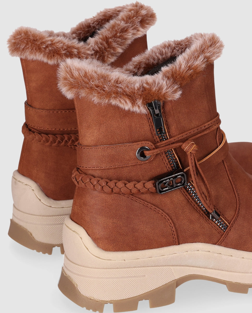 Botas estilo esquiador con cierre en cremallera. Diseñadas con una suela gruesa y un cálido forro efecto borrego en el cuello. Los apliques decorativos a modo de pulsera con puntas metálicas alrededor del tobillo añaden un toque estiloso. ¡Perfectas para tus looks más fríos!