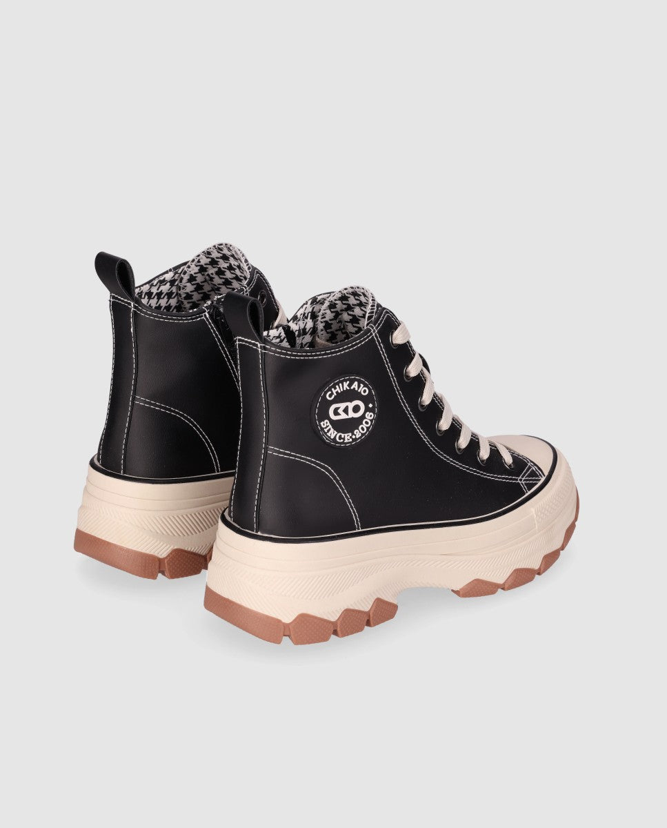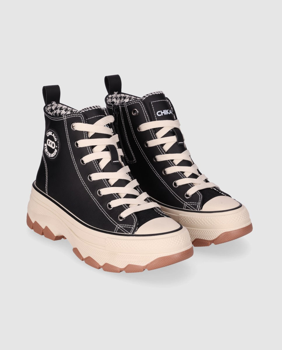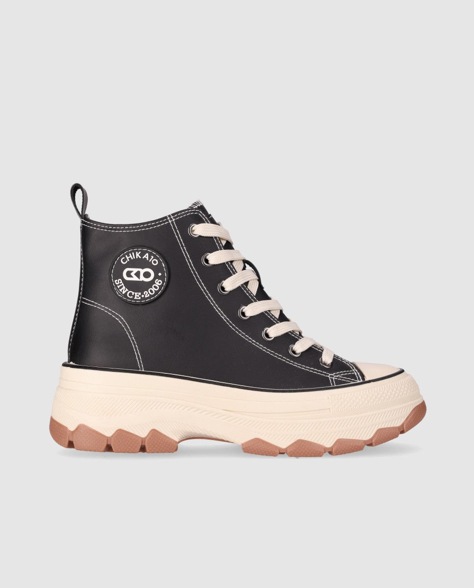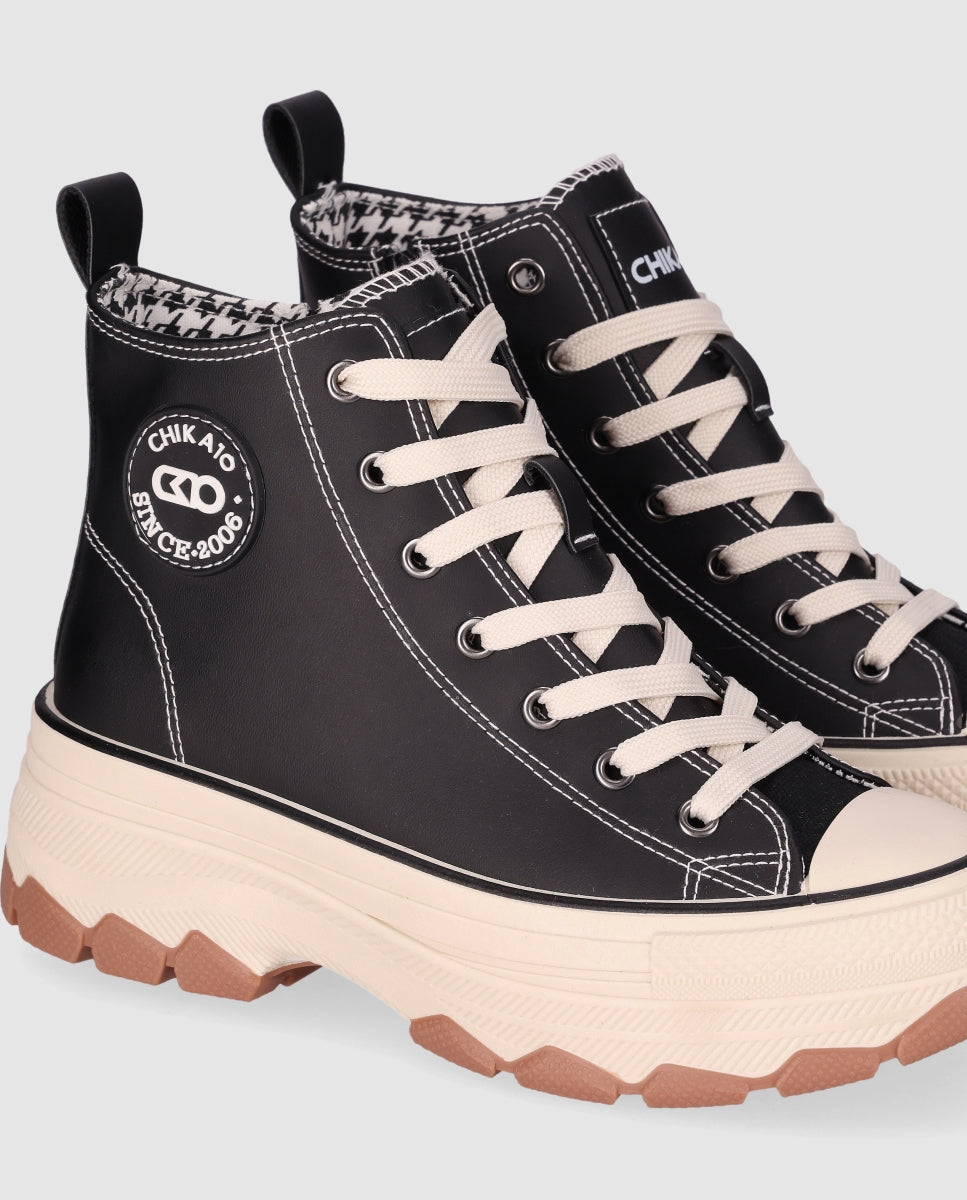 Sneaker de estilo urbano con suela gruesa: Este sneaker de estilo urbano presenta un diseño de caña alta con costuras, cierre a cordones y puntera combinadas. La suela gruesa y rugosa ofrece un agarre y comodidad superior. Con su estilo urbano ¡tus pasos marcarán tendencia en cualquier terreno!
