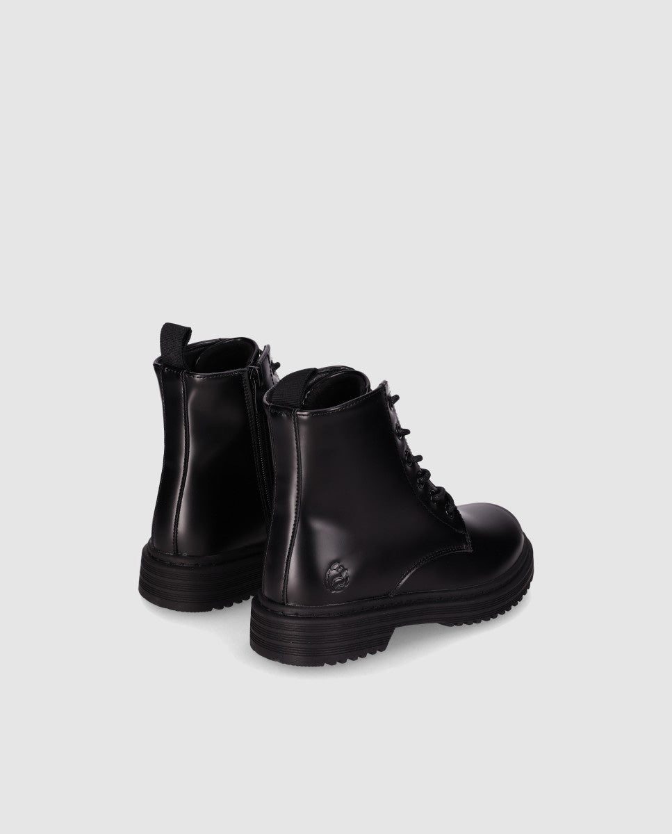Botín estilo militar para niños: Este botín de estilo militar hecho de piel vegana cuenta con una suela gruesa y rugosa que proporciona tracción en cualquier terreno. El diseño incluye cierre de cordones y cremallera lateral para mayor adaptabilidad. ¡Perfectos para pequeños soldados que están listos para cualquier aventura!