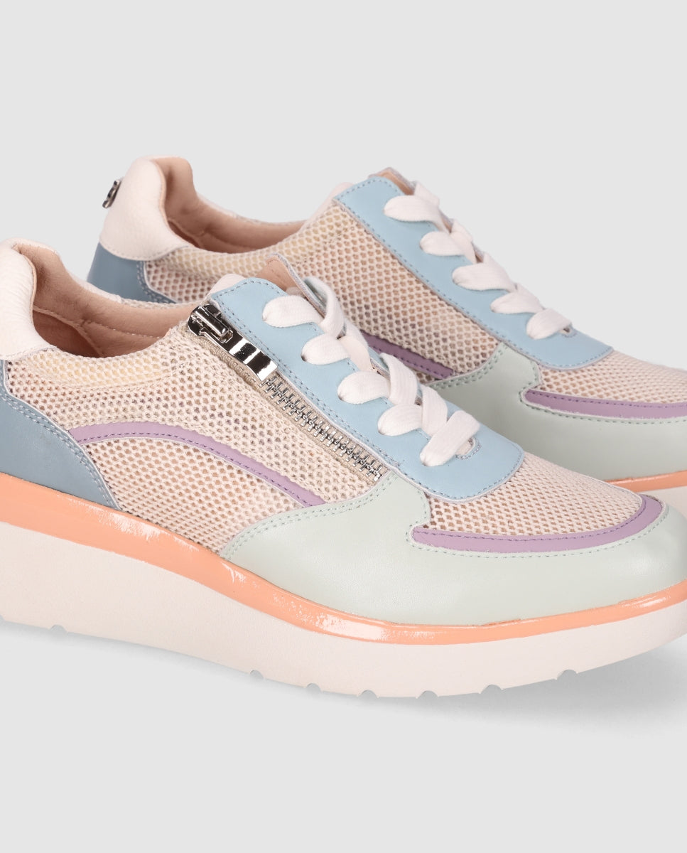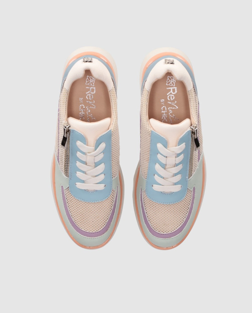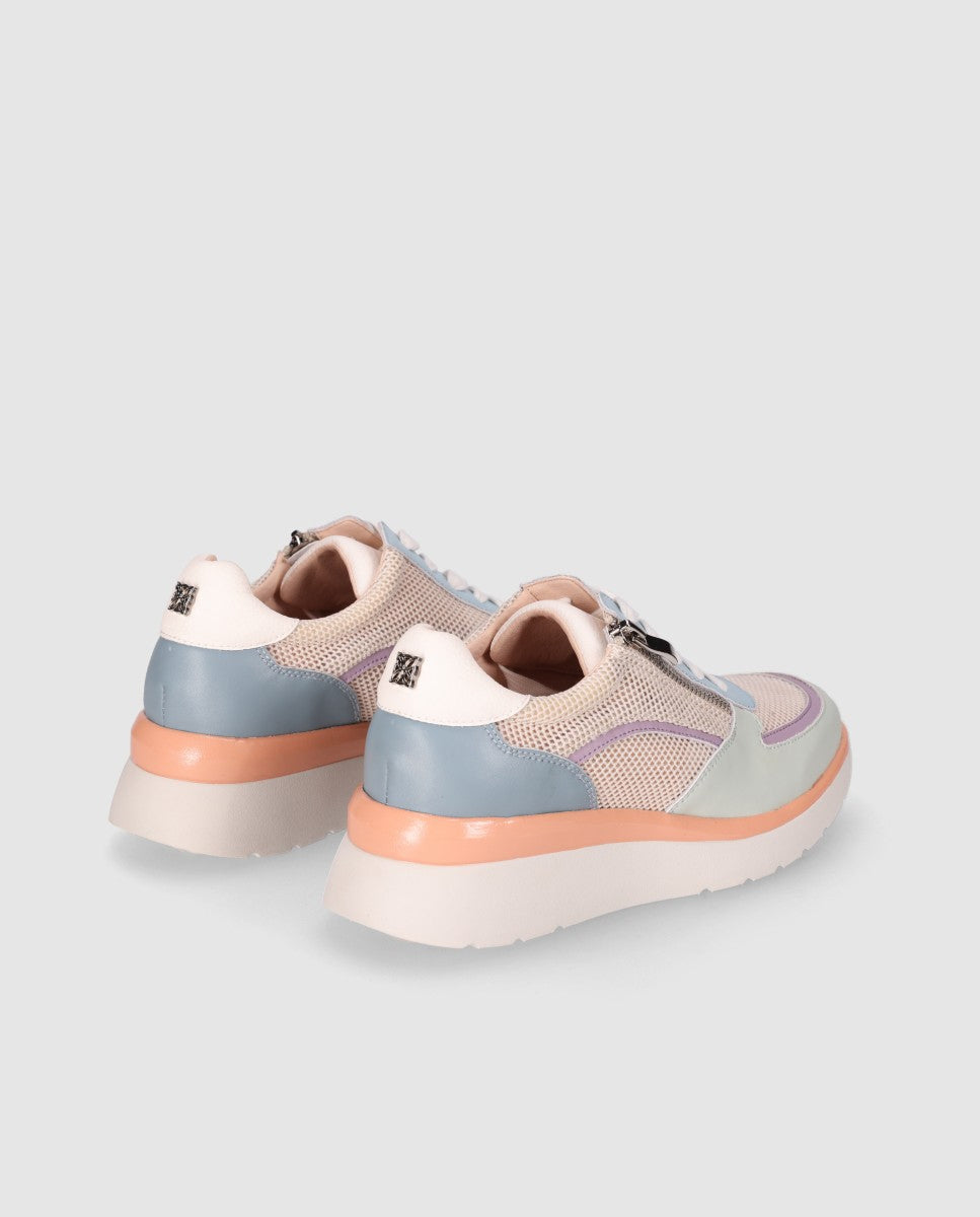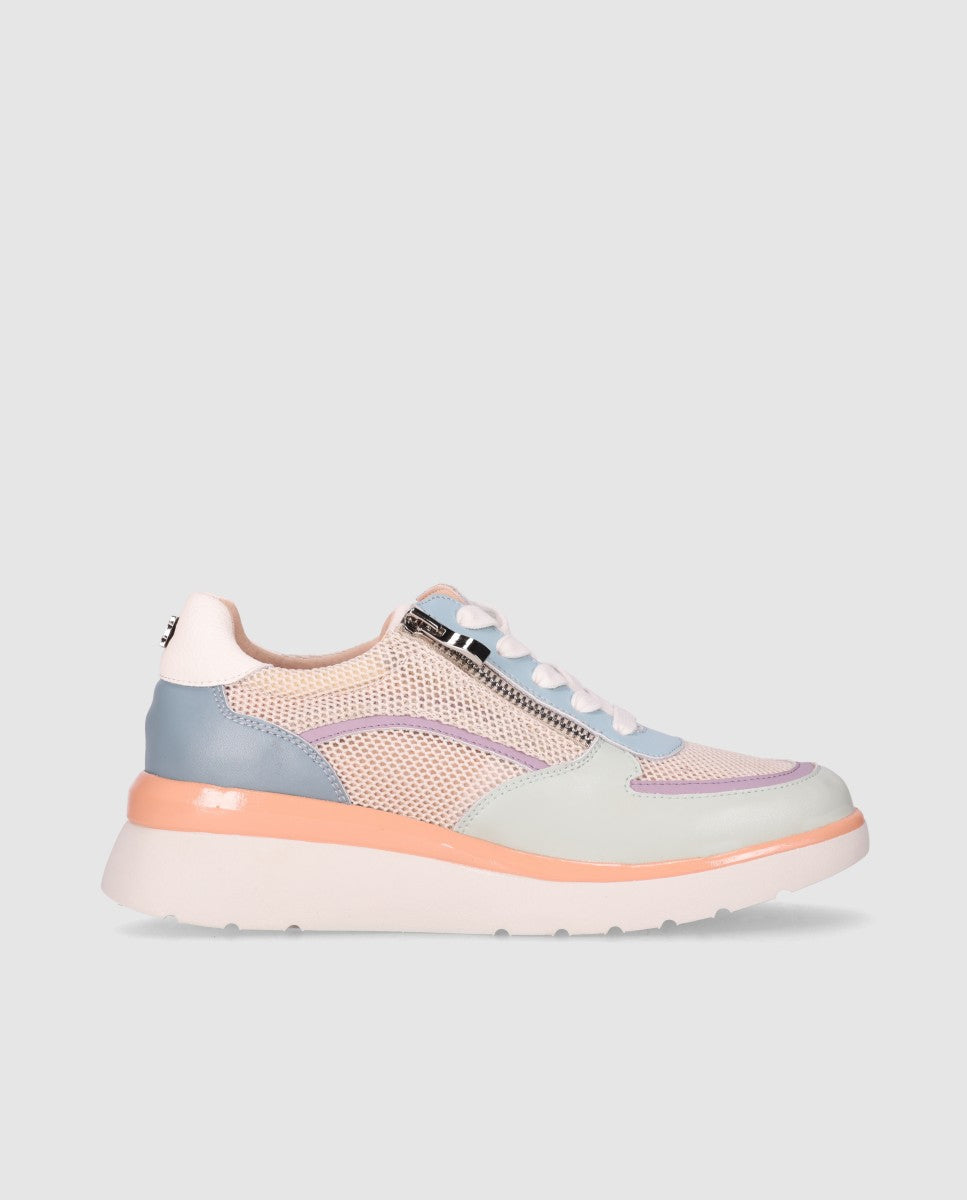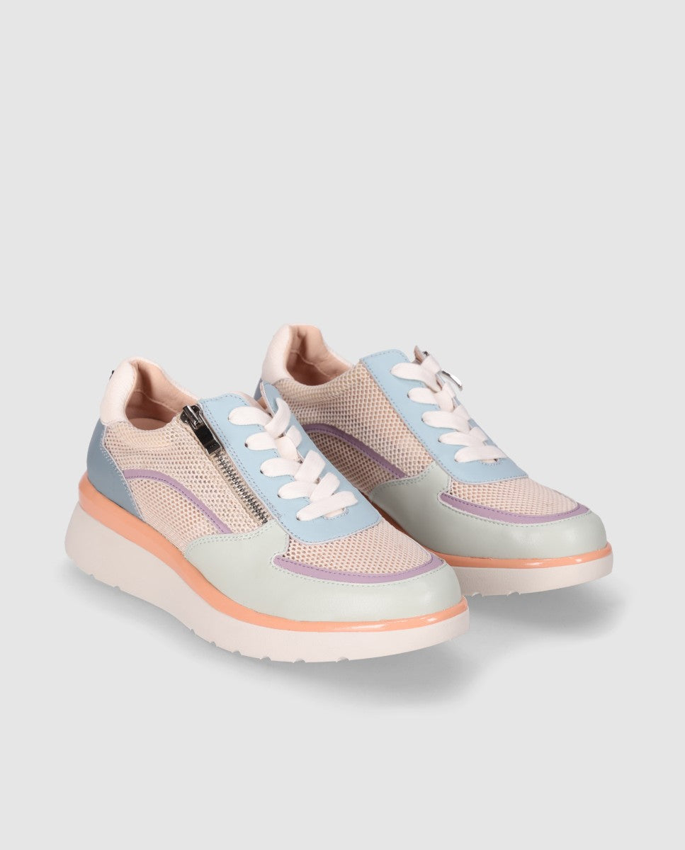 Zapatilla con cordones y cremallera lateral para un ajuste cómodo y práctico, con suela ligera que aporta confort durante todo el día.